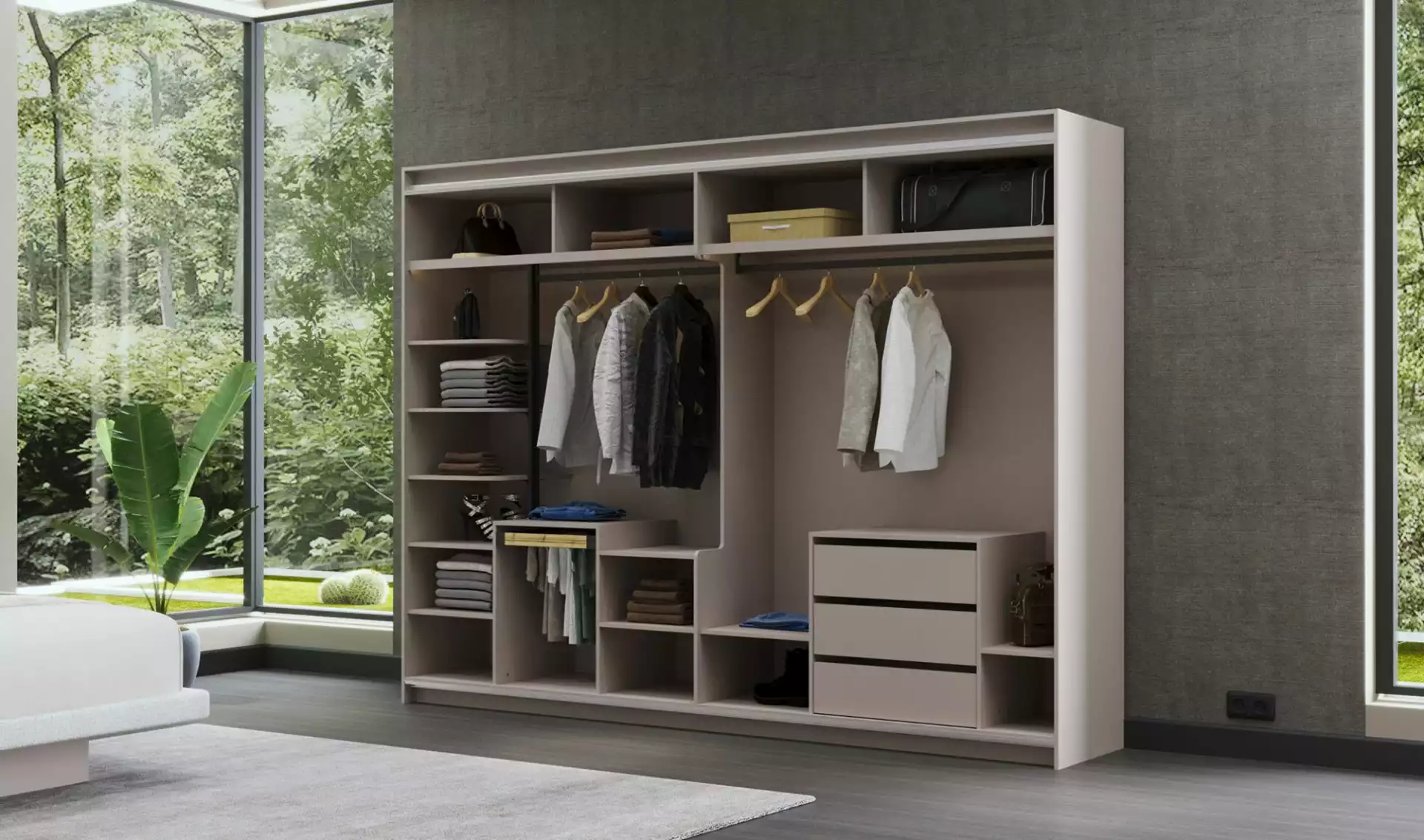 Giysileriniz, aksesuarlarınız ve kişisel eşyalarınız için geniş ve düzenli depolama alanları sunan Dolunay Yatak Odası, yaşam alanınızın düzenli ve ferah kalmasını sağlar. Dolapların iç düzenlemesi, eşyalarınızı kolayca organize etmenize ve bulmanıza yardımcı olur. Büyük çekmeceler ve raflar, tüm ihtiyaçlarınızı karşılayacak kadar geniş bir depolama alanı sunar.